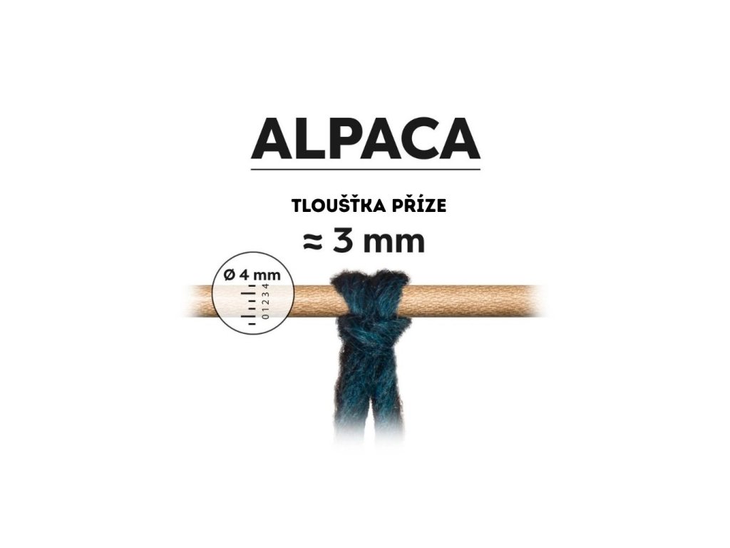 Alpaková vlna je jedním z nejjemnějších přírodních vláken: nepopsatelně měkká, poddajná, nesvědí, je odolná vůči nečistotám a zápachu a má vynikající tepelné vlastnosti, díky nimž je ještě hřejivější než merino vlna. Toto vlákno, bylo vždy vysoce ceněno pro své vynikající tepelné vlastnosti. V chladném počasí udržuje tělesnou teplotu a při vysokých teplotách uvolňuje teplo. Je pružná, pohodlná a neuvěřitelně příjemná na nošení, takže je ideální pro pletení a háčkování dámského svrchního oblečení, jako jsou svetry a kardigany, šály a šály. Zvláštní vlastnosti tohoto úžasného vlákna dodávají čelenkám, čepicím a dekám jedinečný nádech.