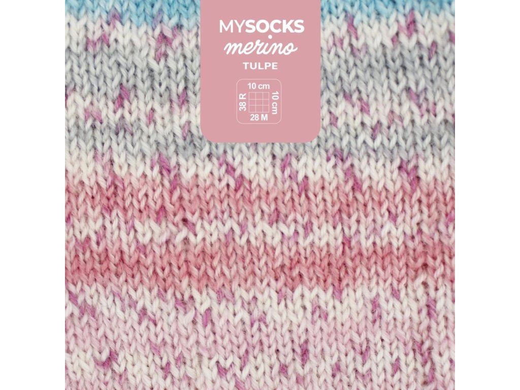 Prémiová ponožková příze Mysocks Merino je vyrobena z nejjemnější vlny merino v kombinaci s odolným polyamidem. Směs zajišťuje pohodlný pocit, vynikající regulaci teploty a vysokou odolnost – ideální pro hojně používané pleteniny, jako jsou ponožky, ale také perfektní pro šály, návleky na nohy nebo jemné doplňky. Obzvláště krátké opakování "vzoru" umožňuje plést krásně rovnoměrně vzorované projekty.