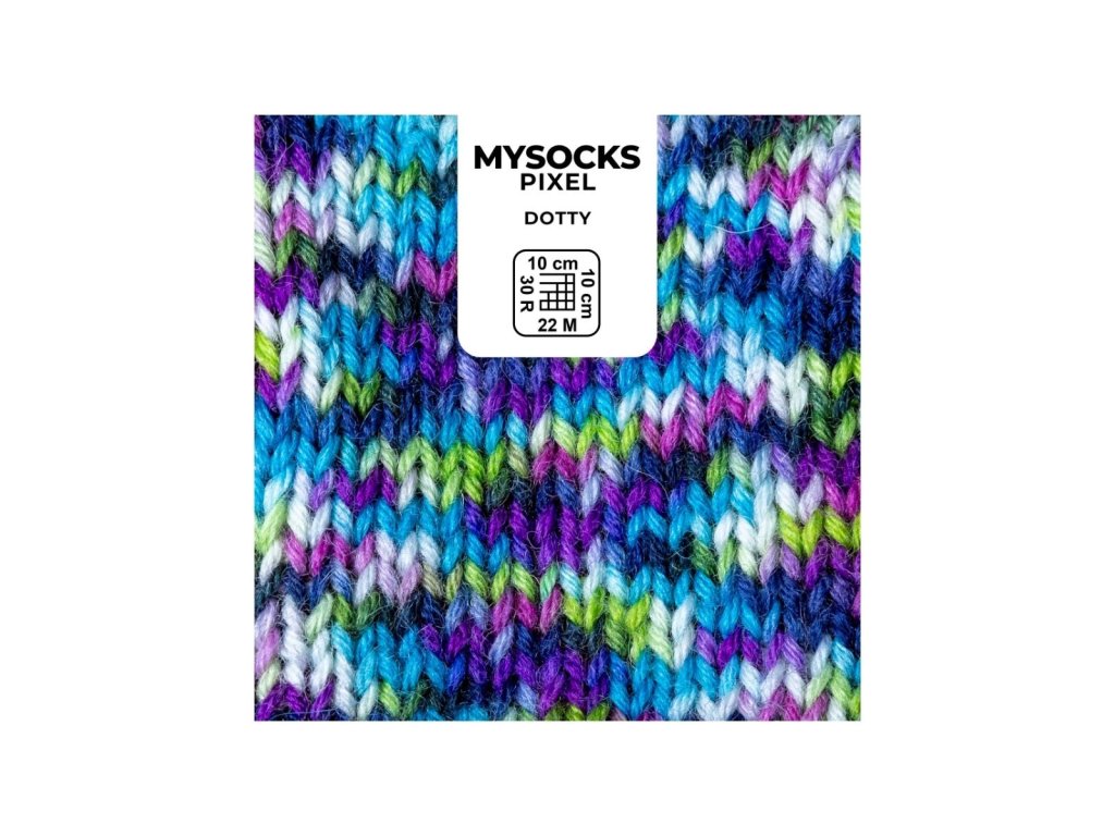 Mysocks Pixel jsou k dispozici v zářivých duhových barvách, zaujmou svým nápadně barevným designem a pletou a nosí se s radostí. Vyberte si z četných barevných kombinací, z nichž každá má zářivý, melírovaný vzor.