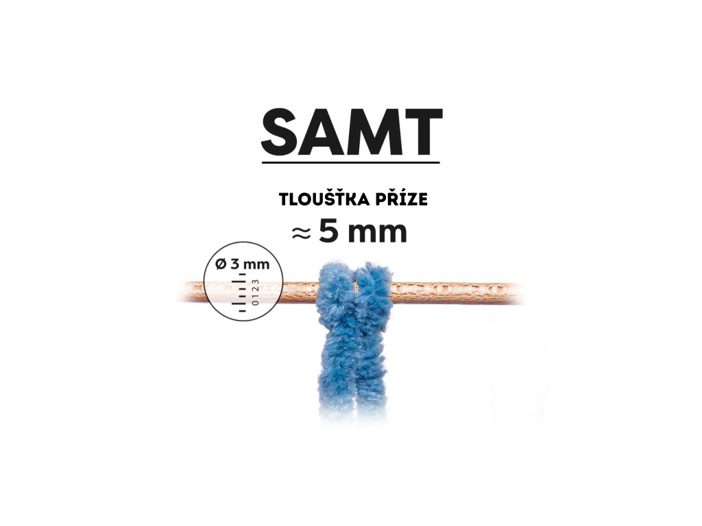 Myboshi SAMT je na dotek velmi příjemná žinylková příze ze ze 100% nadýchaného polyesteru. Byla speciálně vyvinuta pro amigurumi a domácí dekorace a přichází v klubkách velikosti XXL.